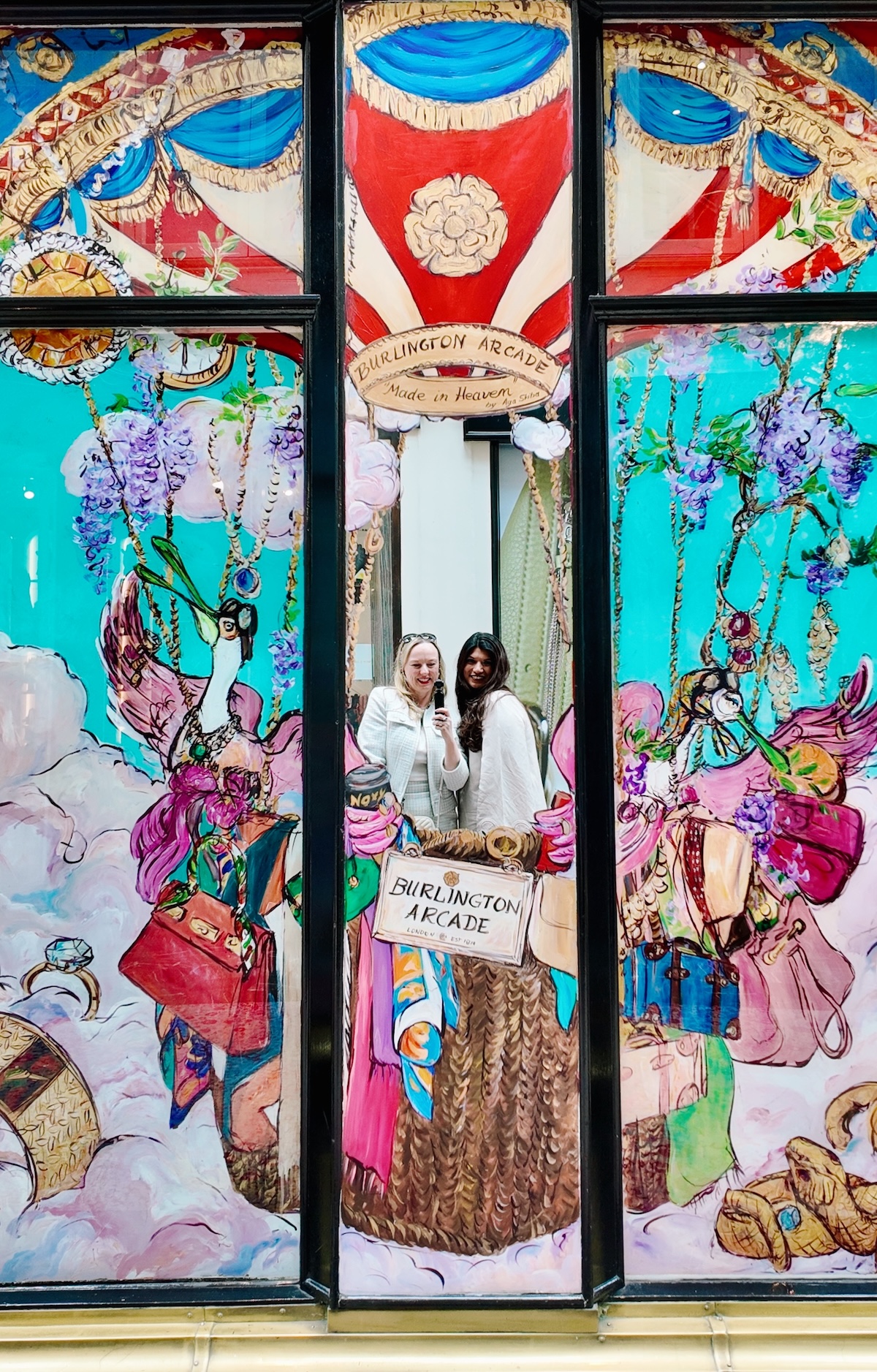 Through Burlington Arcade – a floral ceiling, boutiques, and dreamy displays.